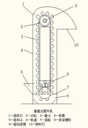 斗式提升機(jī)的主要構(gòu)件有料斗和牽引件。料斗是提升機(jī)的盛料構(gòu)件,根據(jù)運(yùn)送物料的性質(zhì)和提升機(jī)的結(jié)構(gòu)特點(diǎn),料斗可分為三種不同的形式,即圓柱形底的深斗、淺斗及尖角形斗。斗式提升機(jī)的牽引件可用膠帶和鏈條兩種,膠帶和帶式輸送機(jī)的相同。料斗用特種頭部的螺釘和彈性墊片固接在牽引帶上,帶寬比料斗的寬度大35~40mm。